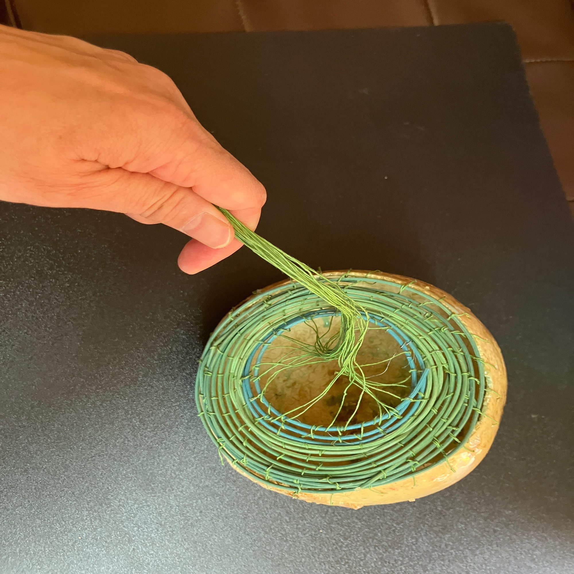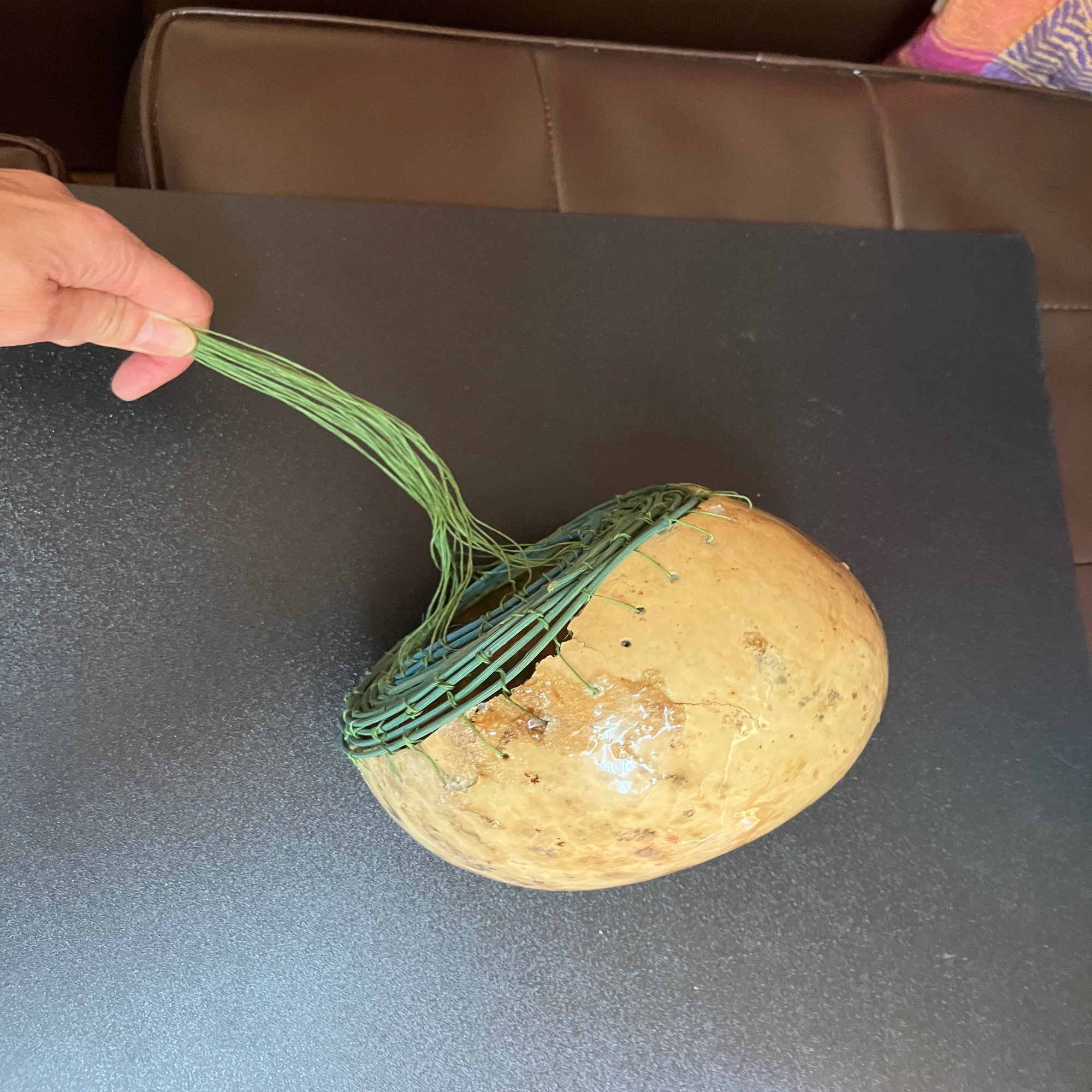 ラフォルジェルネ2024の上記イベントでは、私が八尋さんからオーダーを受けて編んだシェケレも演奏されました。ひょうたんは、八尋さんが「ガボン」で購入されたチューニング済みの楽器用のひょうたんです。演奏方法をご指定されて、細かい点を調整しながら編んだ華やかな演奏ができるシェケレです。八尋さんの所有物なので、こちらでの紹介は控えますが、いずれ八尋さんの媒体でお披露目報告があるかと思います。八尋さんにオーダーでシェケレを編んだのは、これで4つめになります。経験を積ませていただき、感謝しています。