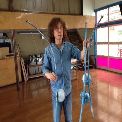 ビリンバウ:私が20代のごく短い期間、今はなき「こどもの城」の音楽事業部で音楽アルバイトをしていた時期があり、そこでは、中学時代に憧れた「武蔵美中南米研究会」のサンバのお兄さん 渡辺亮さんとの再会もあり、その他にも民族音楽に近しいプロミュージシャンのバイト仲間との出会いに恵まれました。小澤敏也さんとは、家が近所なこともあり、音楽の兄貴的な存在として晩年にはホームページやYouTubeの管理や、私の主宰するこどもむけの音楽鑑賞教室、連名でのワークショップ(動画での紹介はでんでらキャラバン2012)などさまざまなことを伝授していただきました。写真のビリンバウは、園児のご家族がTVでみたビリンバウをみようみまねでつくられた「おもちゃビリンバウ」です。